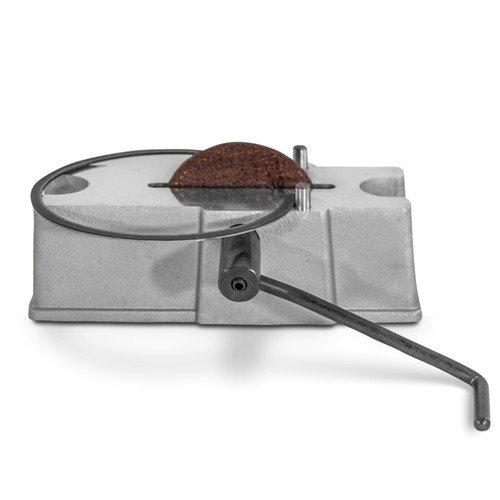 To assure proper piston ring end-gap, the piston ring filer enables the user to file piston rings quickly and accurately. Position the piston ring firmly against the dowel pins, crank the handle to turn the abrasive wheel. Using a feeler gauge, file the piston ring to meet the manufacturer’s specification.